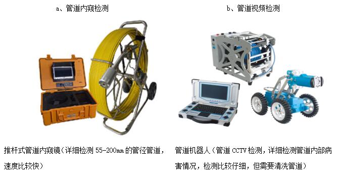 使用仪器:管道CCTV检测系统(管道机器人)、管道潜望镜、管道声呐检测系统
