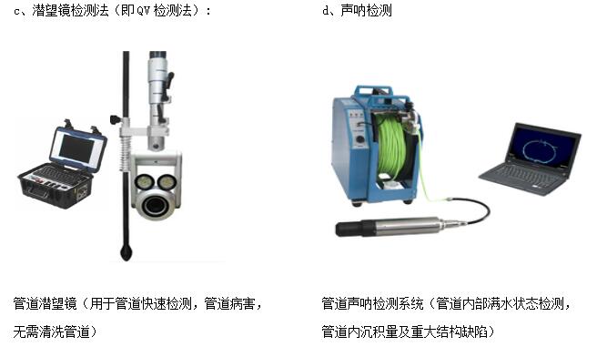 检测方法:CCTV检测法、QV检测法、声呐检测法